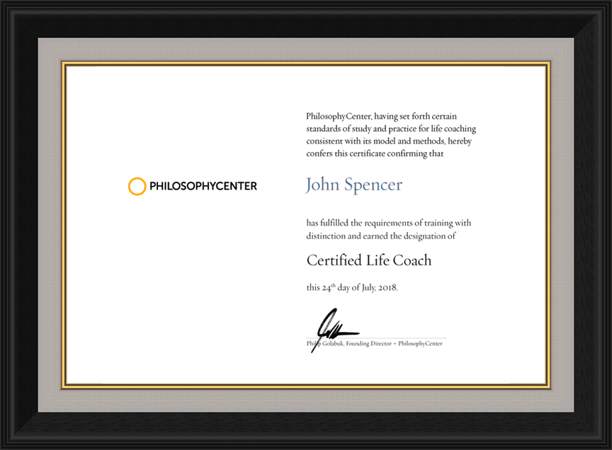 PhilosophyCenter is pleased to offer professional training and certification as a life coach through our LifeCoach Training (LCT) program. LCT provides an intensive curriculum of individual study and supervised practice that imparts the core competencies of philosophical coaching in just 12 weeks. Over the course of the training, the student learns the unique approach, principles, and methods for "deep" life coaching developed by PhilosophyCenter to help clients identify unwitting beliefs and assumptions, clear contradictions, shed false opinions, and make better choices in all areas of experience. The last six weeks of the program are spent in supervised practice during which the student coaches the instructor, then moves on to coaching guest clients scheduled by PhilosophyCenter. Successful completion of LCT leads to designation as a PhilosophyCenter Certified Life Coach (PCLC) with all attendant benefits and ongoing support.
